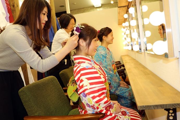 受付後、さっそくお着付けがはじまります。各店着付けスペースをご用意しております。