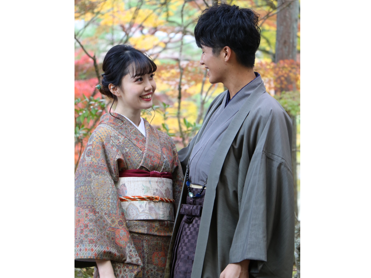 アンティーク着物を含む高級ラインの女性向け着物プランと、メンズ着物プランがセットになったカップルさん人気の専用プラン。普段のデートで、週末旅行で、誕生日や結婚記念日でと、様々なデートシーンをより一層楽しく演出したいカップルさんにおすすめです。