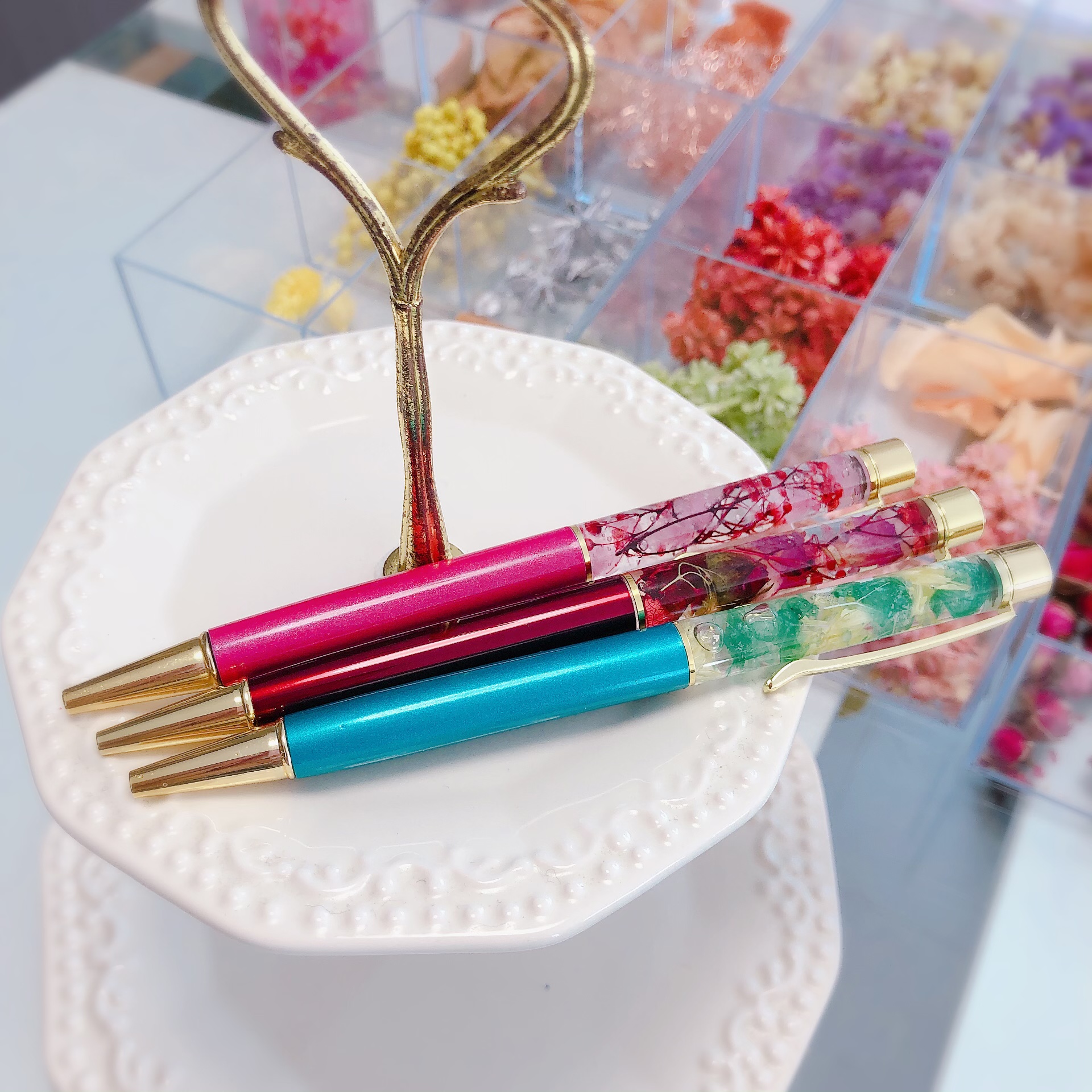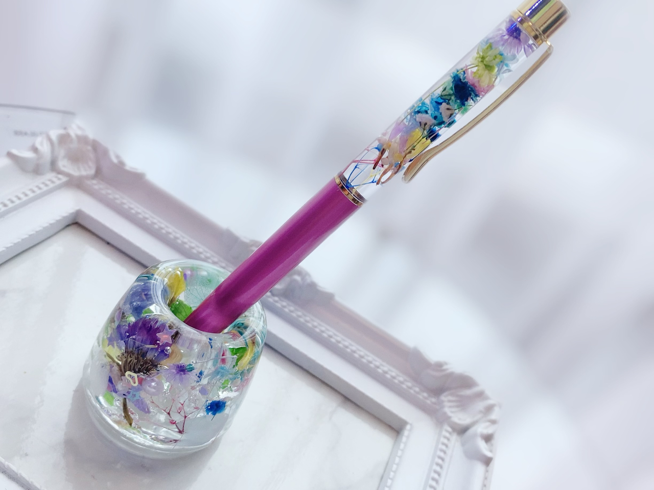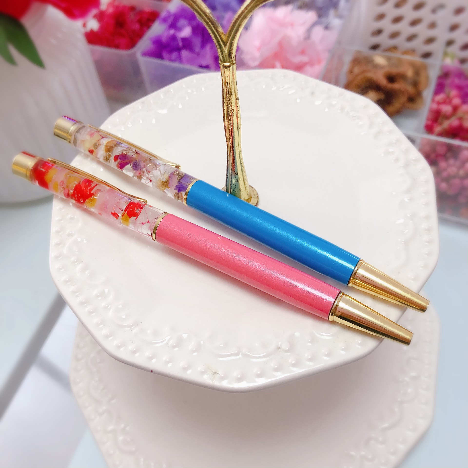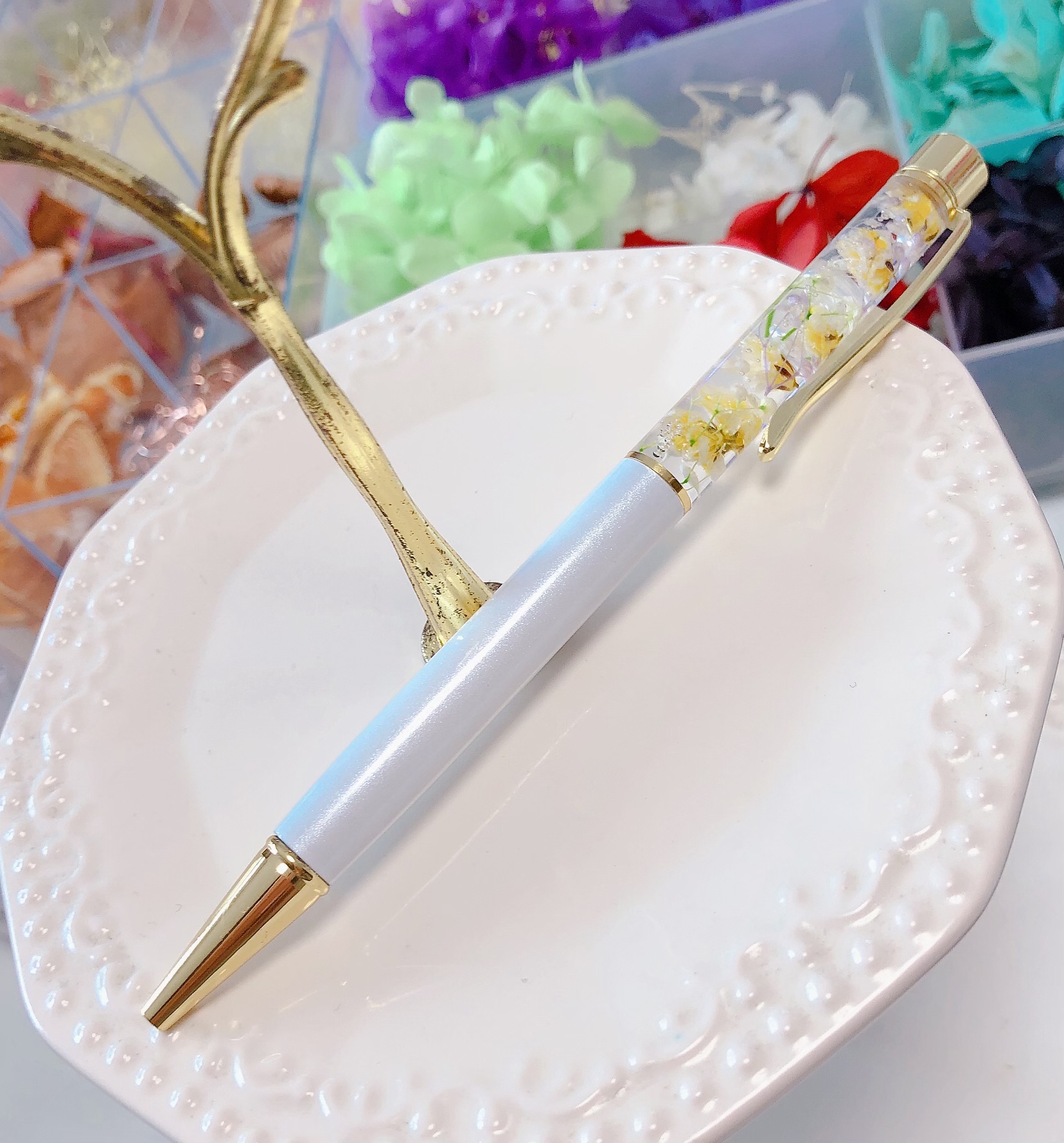 ボールペンにお好きなお花やパールを入れて世界に一つだけの自分のハーバリウムボールペンを作れます!