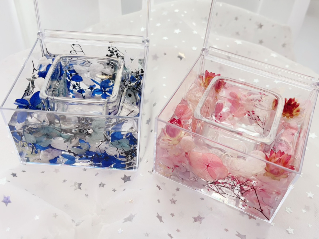 固まるハーバリウムオイルを使用する為、こぼれる心配はありません♪