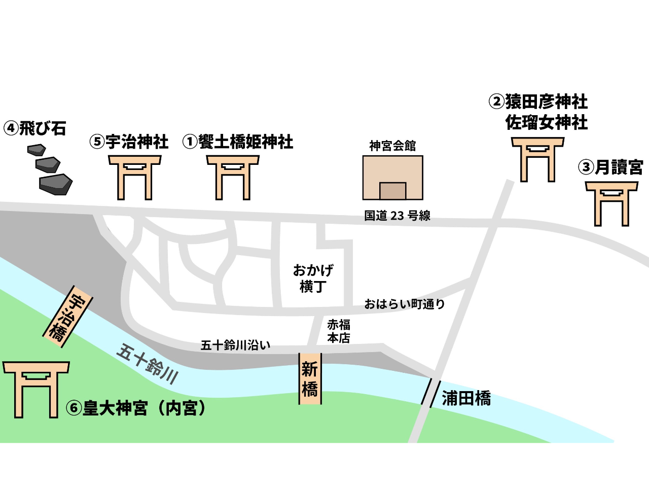 内宮前〜宇治神社〜猿田彦神社〜月讀宮(つきよみのみや)〜おかげ横丁