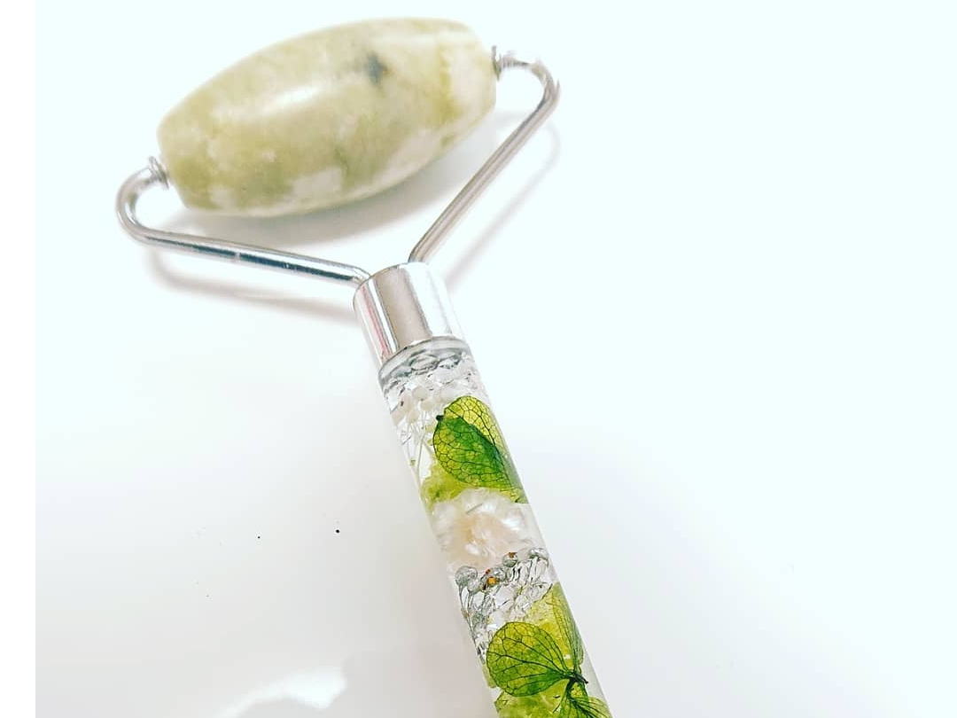 お好きなお花で作るハーバリウムのパワーストーン美顔ローラー♪