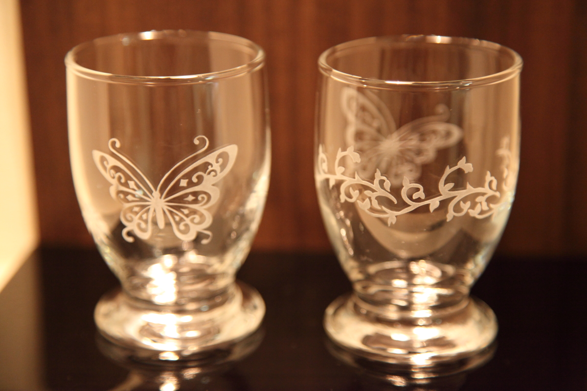 カリグラフィーで書いた文字とお好きな図案をオリジナルエッチングしてみませんか?ガラス細工作り