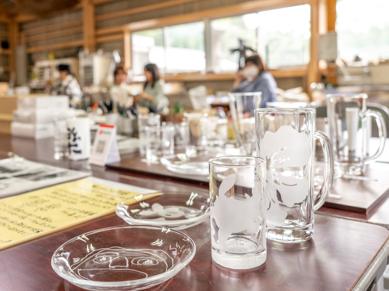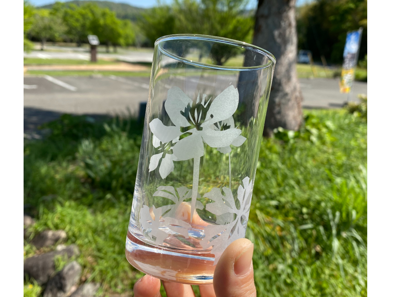 サンドブラスト体験では、シールを貼ったガラスコップ(※)に好きな模様を描きます。その模様をカッターで切り取ったあとに特別な機械で砂を吹きつけると、コップに模様がつくという体験になっています!