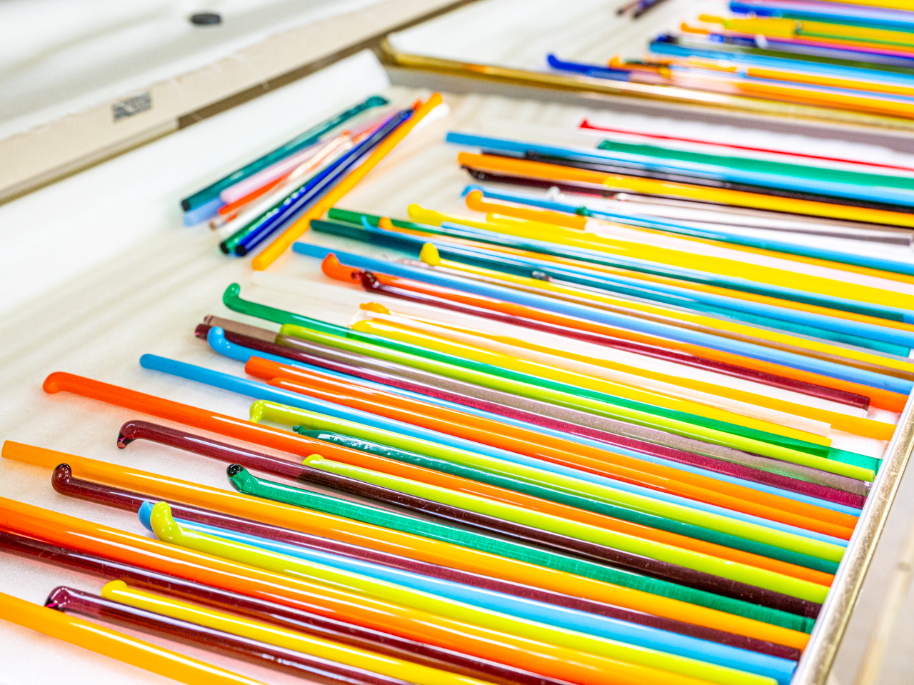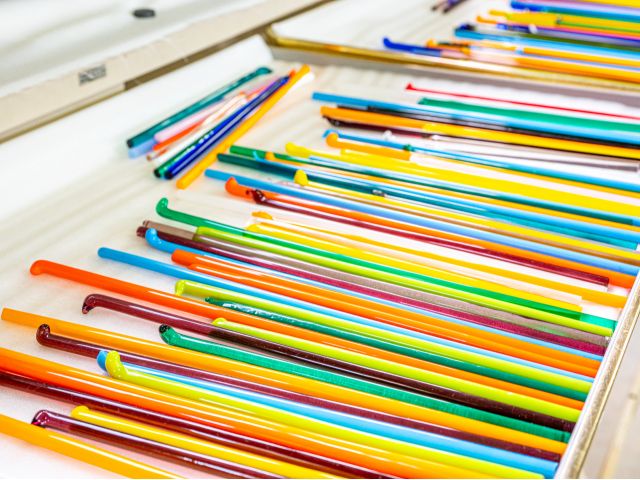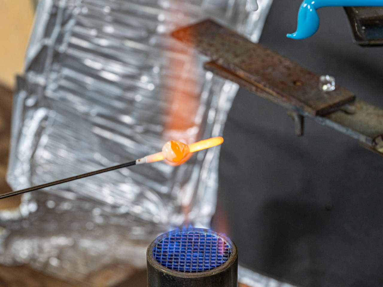 ガラス棒を高温の火で溶かしながら制作していくバーナーワーク体験では、とんぼ玉かマドラーお好きな方を選択し制作して頂きます。