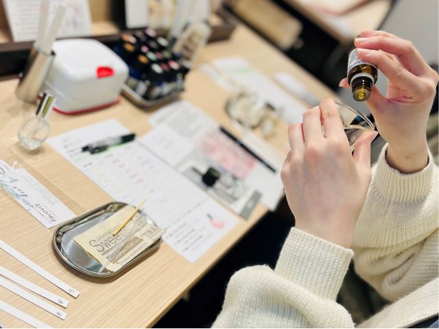 自然由来の香りを楽しみながら、お好みの香りを見つけていき調香そして貴方だけの香りが完成します。