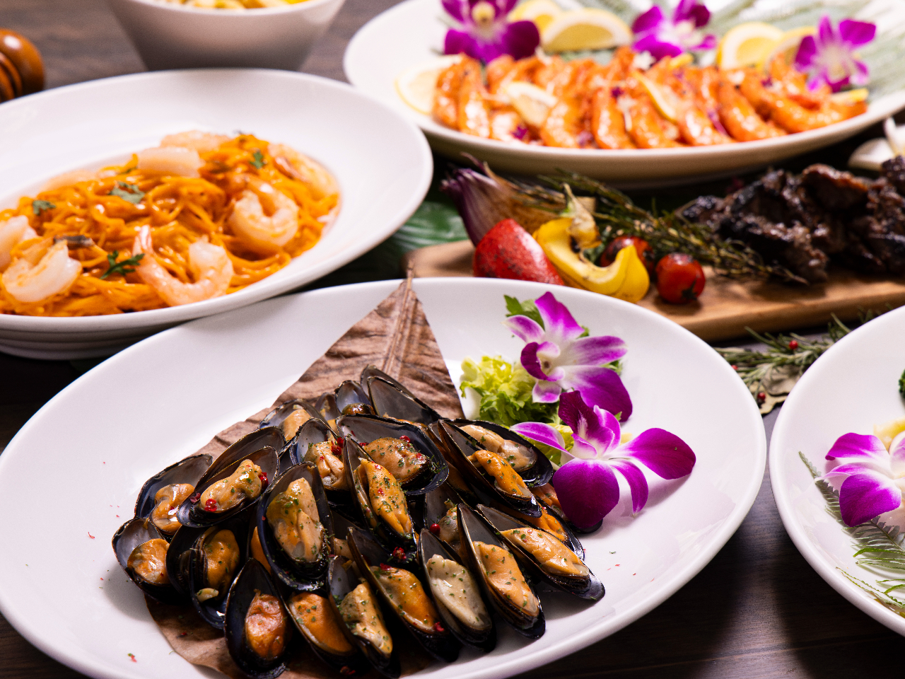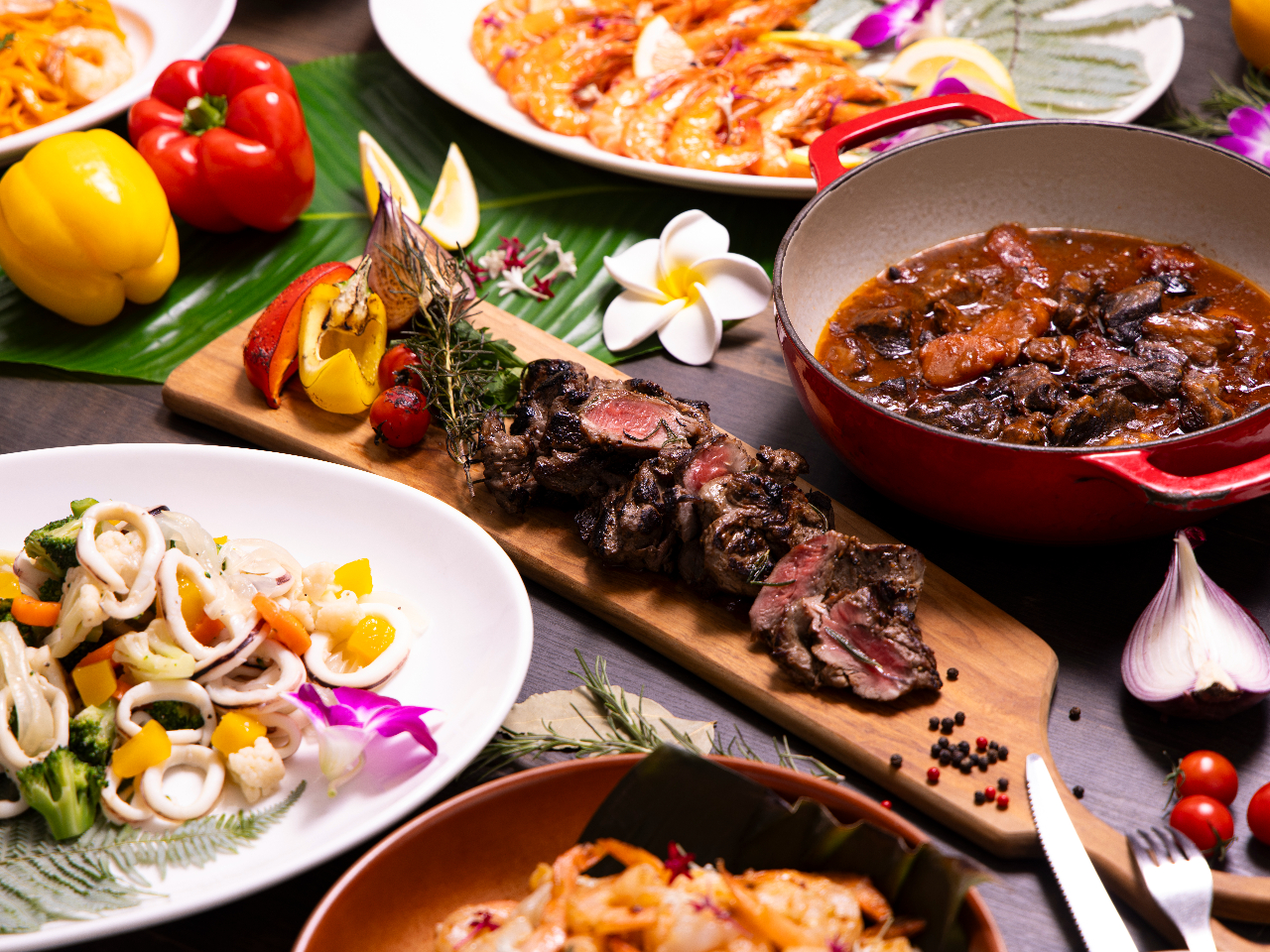 【 ディナービュッフェ 】\シーフード×焼き立てステーキ/沖縄で味わう、五感で愉しむ楽園ビュッフェ!ステーキに自分好みにトッピングできるソフトクリームも食べ放題! ※前日24時までご予約受付
