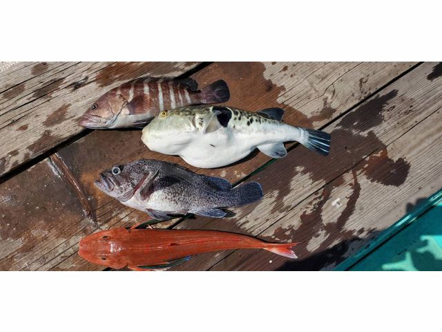 真鯛はもちろん、ハナダイ、ホウボウ、カサゴやソイなどの根魚もターゲットにしていきます。特に真鯛は人気の釣り物で、植田丸では世界記録も上がっており大人気のターゲットですね!