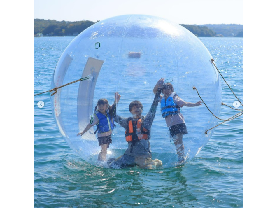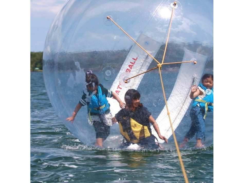 海の上に立つ?新感覚の浮遊体験!直径2.5mのビニール製のボールの中に入り