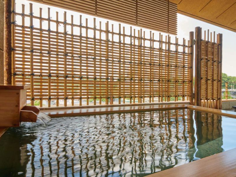伊豆石と檜の露天風呂には新たにラドン泉『銀泉』をご用意。日帰り温泉