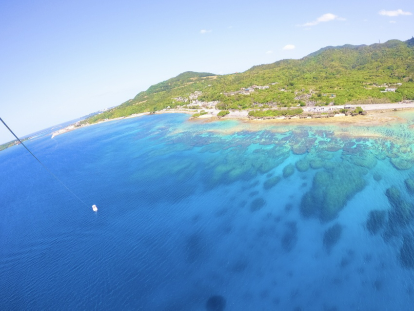 カラフルなセールを背に、上空から眺める空と海のコントラスト、爽やかな海風を肌で感じ、沖縄北部の美しい島々の景色を是非ご堪能ください!