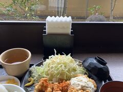 チキン南蛮定食1000円 調味料エリアで七味唐辛子と辛子をゲットし味変しました