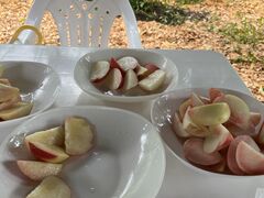 あいにくの雨でしたが、4種類の桃が食べ比べできました。どれも甘くそれぞれ美味しさがあり堪能できました。お店の方も親切に声かけしてくださり感じが良かったです。2人で12個ほどの桃食べました。また行きたいです。