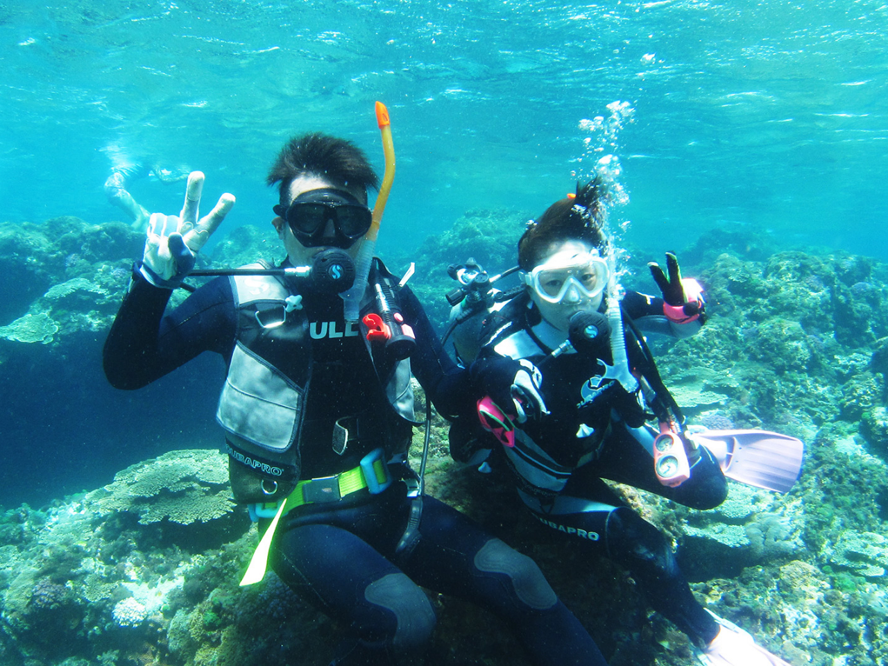 それならインストラクターと一緒に体験ダイビングという方法があります。初めての体験をリラックスして楽しんでいただきたいので、クラウンの体験ダイビングは貸し切りコース!いつでもあなたやあなたのお友達と、またご家族だけで楽しむことができます♪水着とタオルとほんのちょっとの勇気があれば大丈夫!健康な方で10才以上であれば誰でも参加できます。