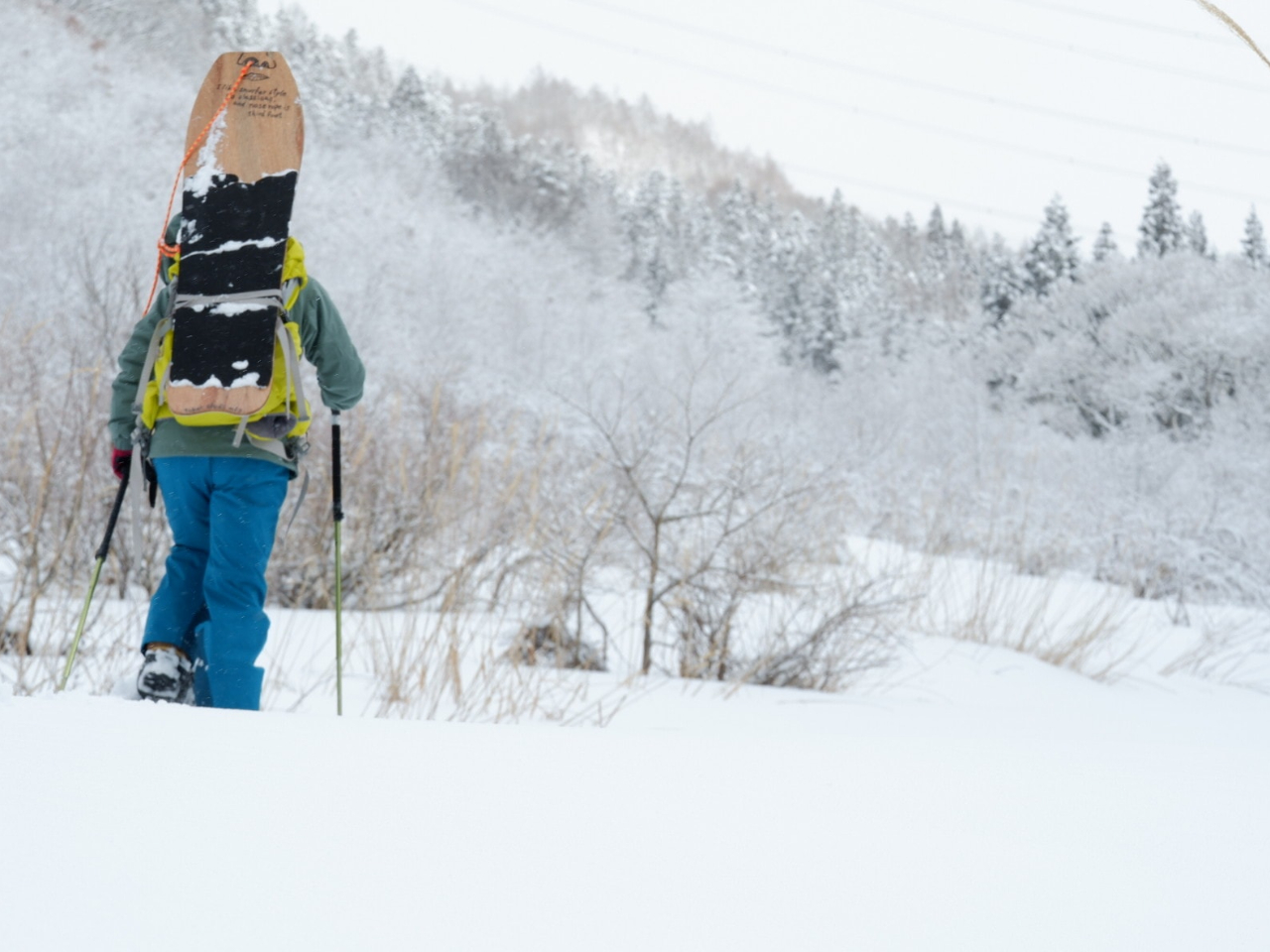 • 目的地に到着したら パウダーサーフボードで楽しみます