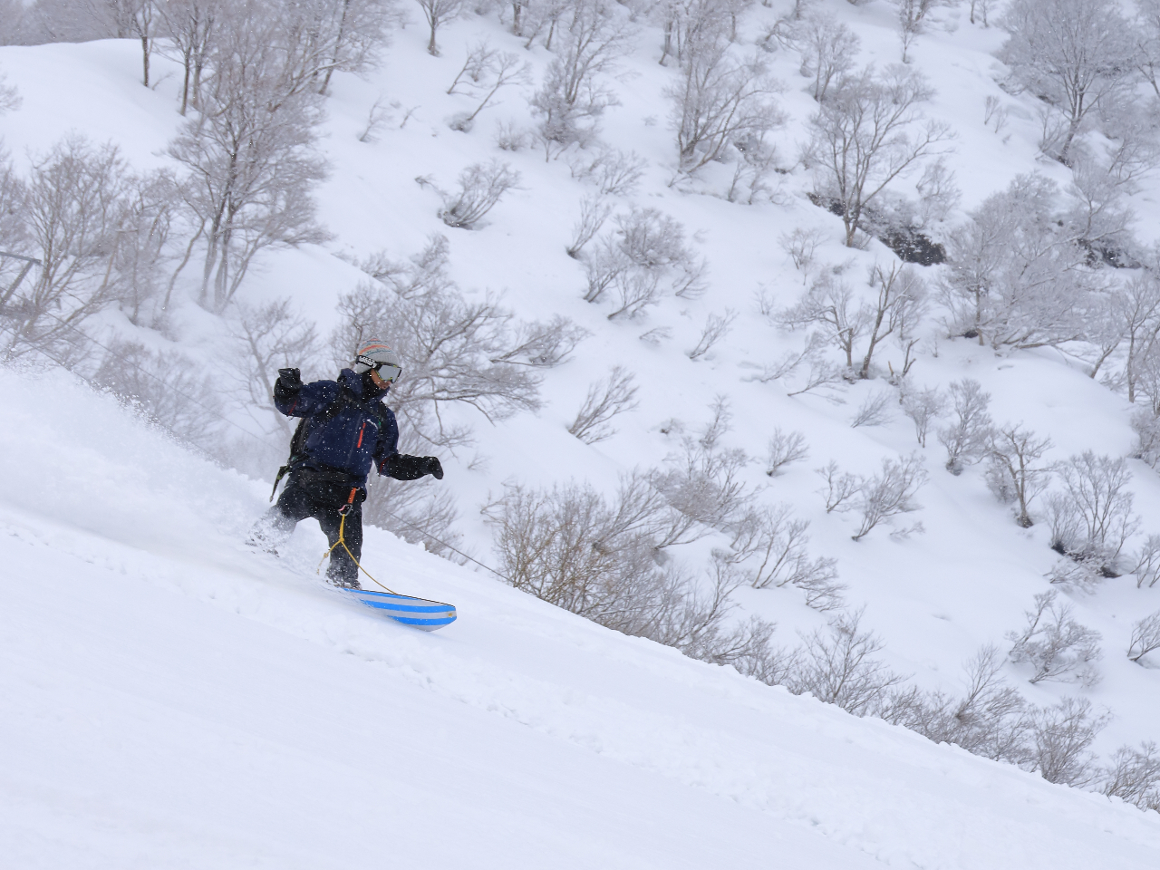 • まったりとパウダーサーフを楽しみます