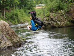 ラフティング終了後の入水シーン