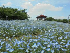 テレビのローカルニュースでネモフィラが満開だと知り、市バスで行ってきました。南からの入り口は工事中、戸田川に沿って公園へ。丘には小さな青い花びらが一面に咲き渡り、別世界にいるような雰囲気。他にも見どころが。ミニテントも張れて遊具もある広場や入館無料のフラワーセンター・農業科学館、産直市場や休憩所もある陽だまり館など。ただ広いだけでなく、充実した施設が満載の公園です。