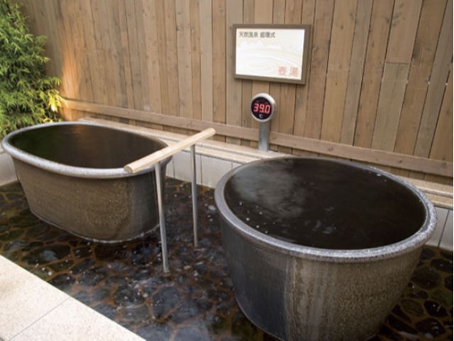 黒湯の天然温泉をはじめ、人工の高濃度炭酸泉や壷湯、ジェット系風呂など、14種類の多彩なお風呂&サウナを完備しています。