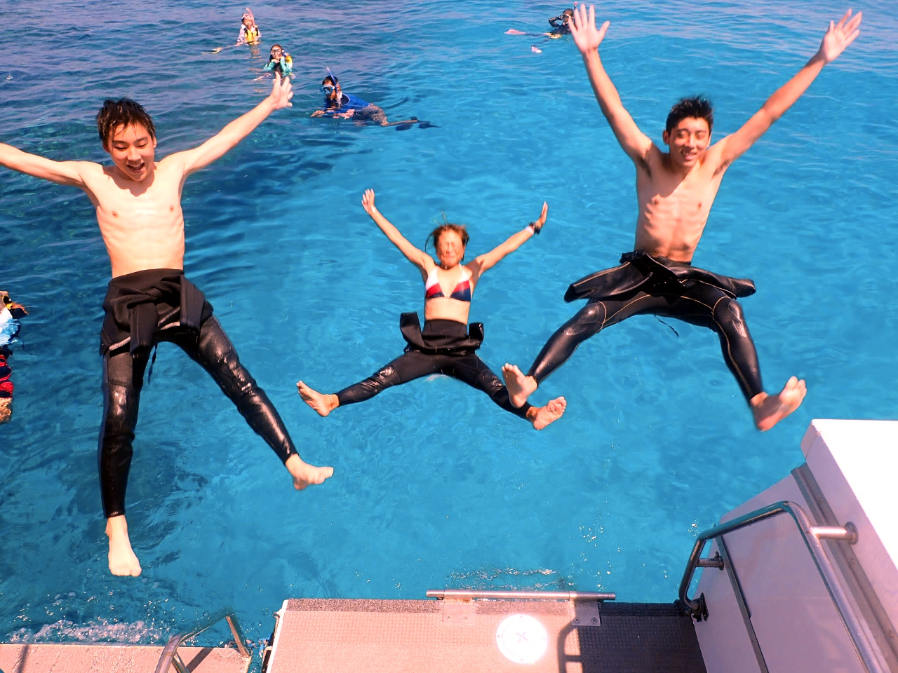 ★ライフジャケットやシュノーケル器材を装着するので泳ぎに自信がない方でも大丈夫!シュノーケリング・ボートシュノーケル