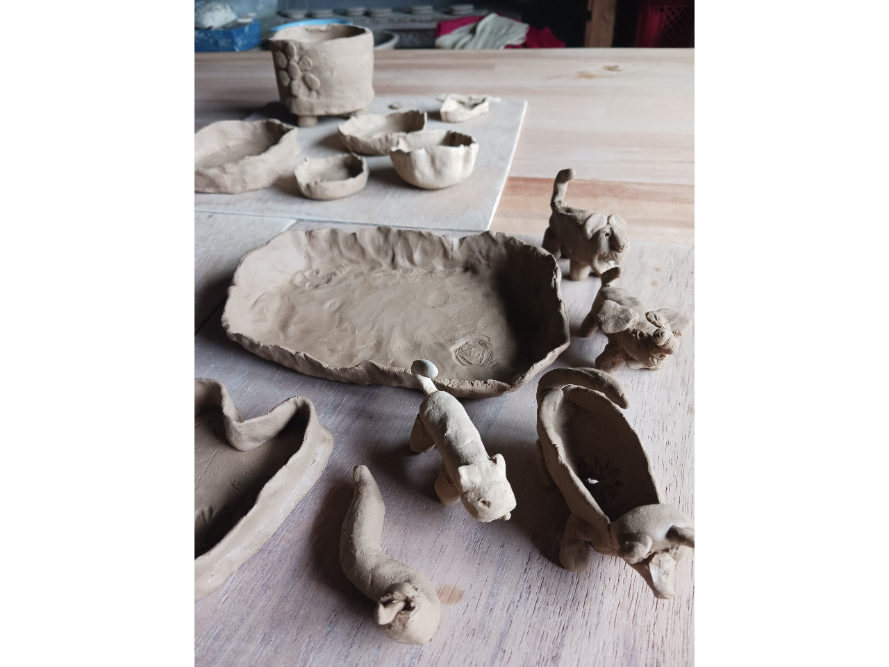 オリジナルのお皿やカップは、もちろん、虫、ネコ、お地蔵さま、フクロウ…好きなものいろいろを土で作ってみよう。