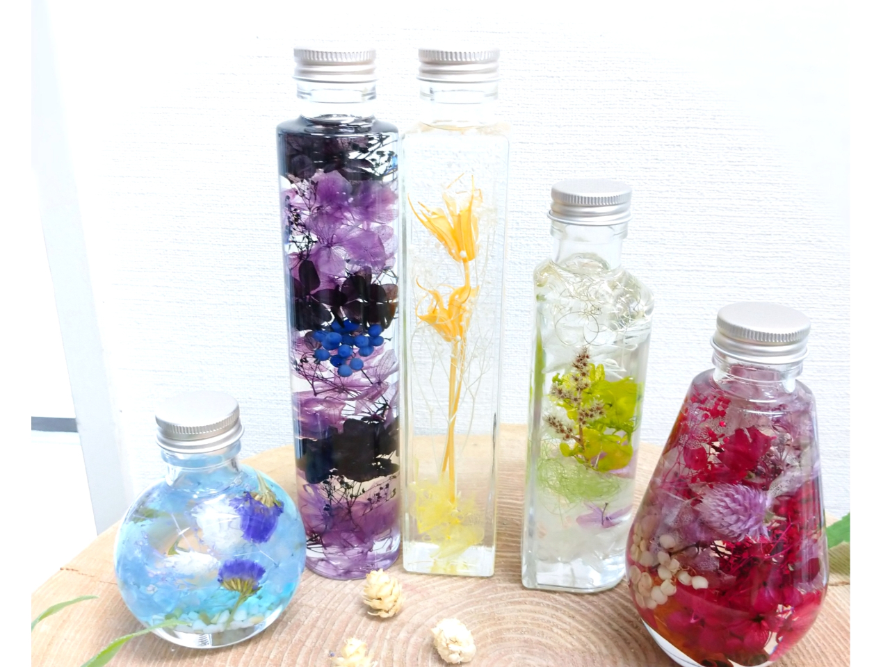 形の違うボトルを5本制作致します。ボトルの特徴とデザインの違い、作り方が学べます。
