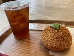 みかんのシュークリームを店内のカフェスペースで食べて、お土産のお菓子を購入しました。