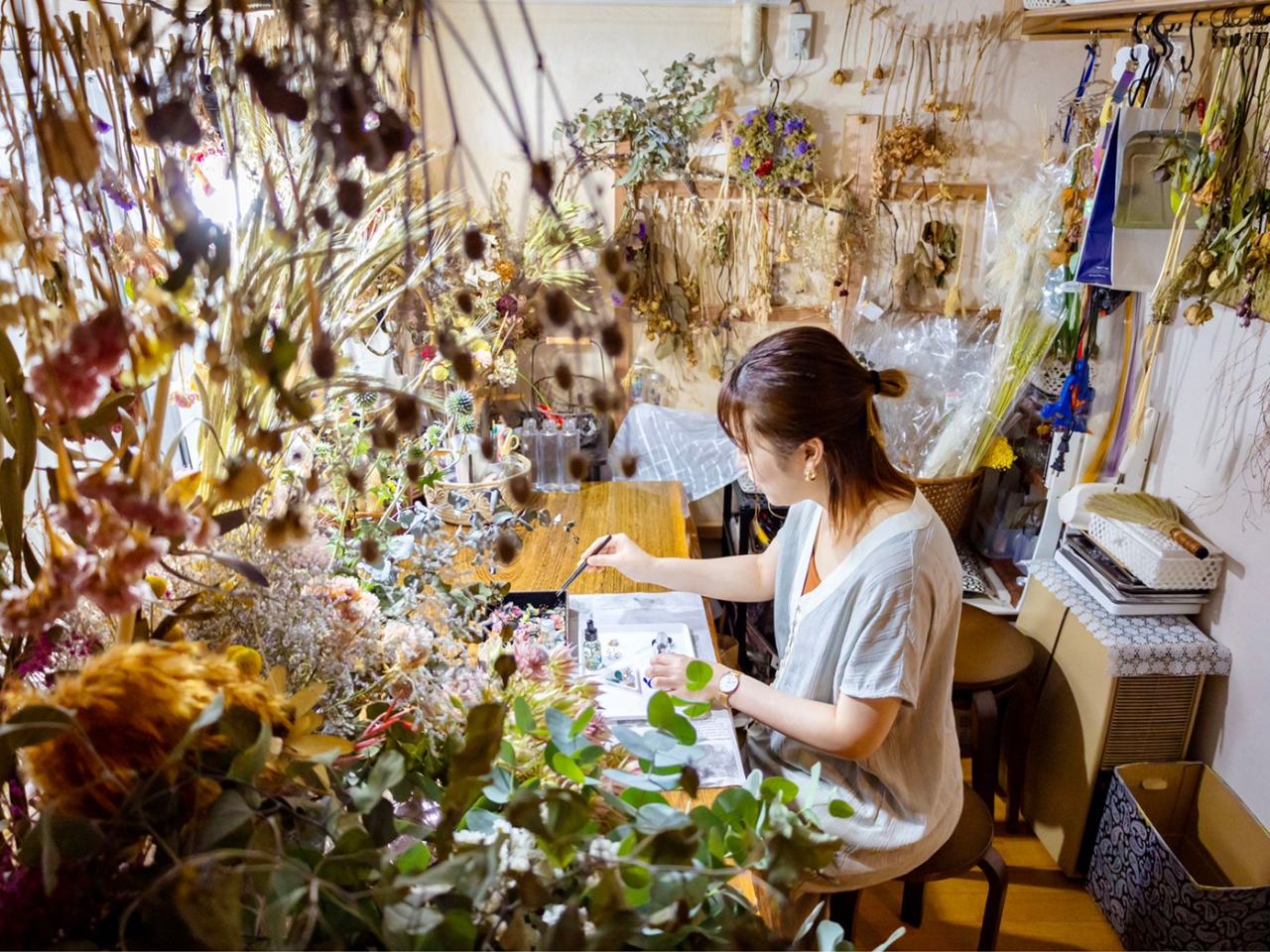 ハーバリウム中心のワークショップとカフェスペースのあるお店です