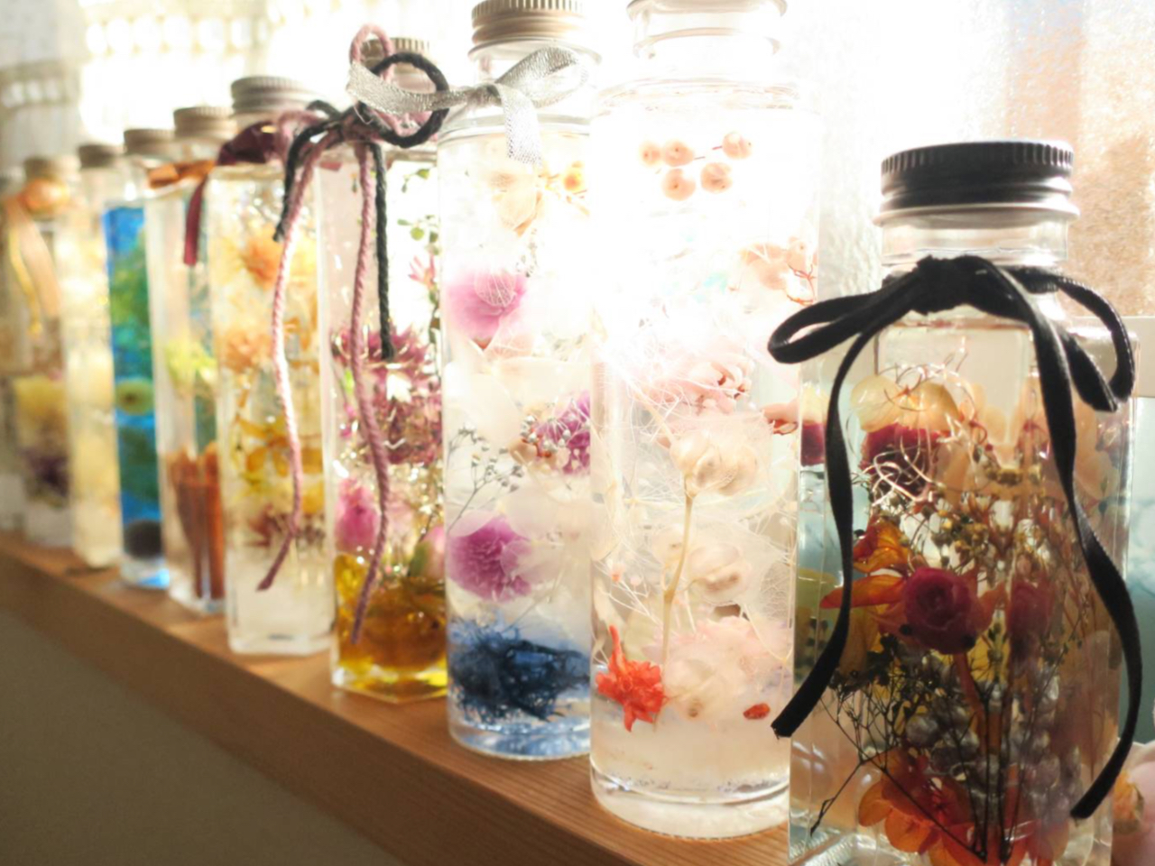 ハーバリウムを作ってみたい!と思い、友人と作りに行きました。内装もドライフラワーやハーバリウムで彩られていて、