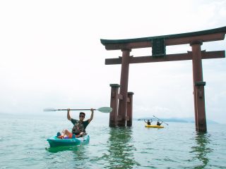 青い湖上のパワースポット・白ひげ神社湖中鳥居参拝カヤックツアー