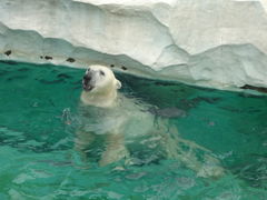 ガラスの壁はありますが、ホッキョクグマのダイビングや水泳を間近で見られて大迫力に感動!ホッキョクグマゾーン、お勧めです。