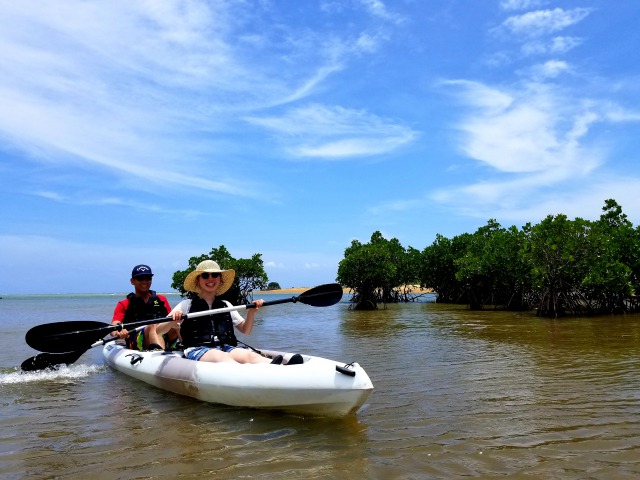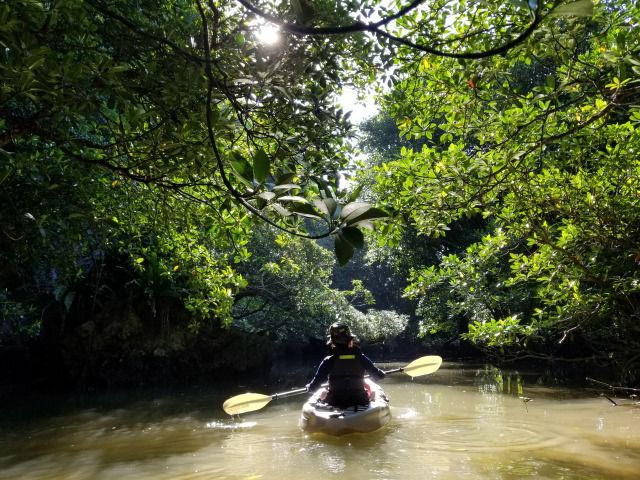 ただカヤックに乗るだけでなく、マングローブの森の中を歩いて散策しながら、より自然を身近に感じて楽しんで頂くためのプランです。頑張って漕いでみたり、ときには漕がずにボーっとしてみたり。涼しい木陰で休憩してみたり。あなたにとって素敵なひとときになりますように、マングローブ大好きなガイドが親切・丁寧にご案内します。終わる頃にはあなたもマングローブの虜になってるかも!?