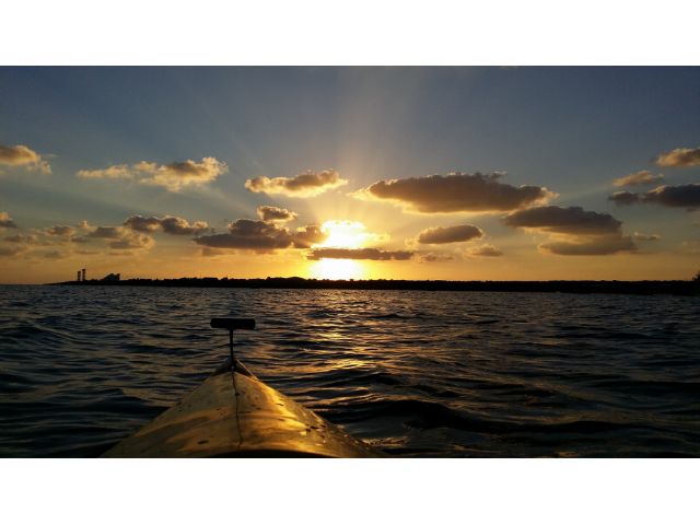 カヤックに乗って海へと漕ぎ出し、そこに見える赤やオレンジの光の雨を浴びましょう。
