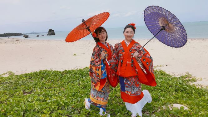 おかげさまで、目の前の砂浜でステキな写真を撮ることが出来て、本当に良い思い出になりました。姪達の衣装姿はとても可愛かったですが、沖縄出身の父の衣装姿が1番良かったです!