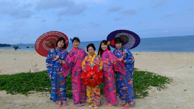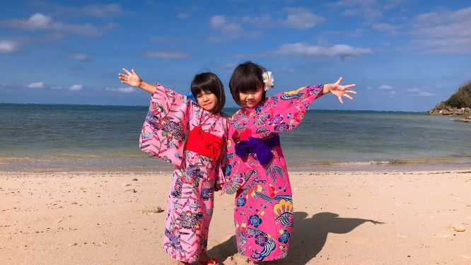 おかげさまで、目の前の砂浜でステキな写真を撮ることが出来て、本当に良い思い出になりました。姪達の衣装姿はとても可愛かったですが、沖縄出身の父の衣装姿が1番良かったです!