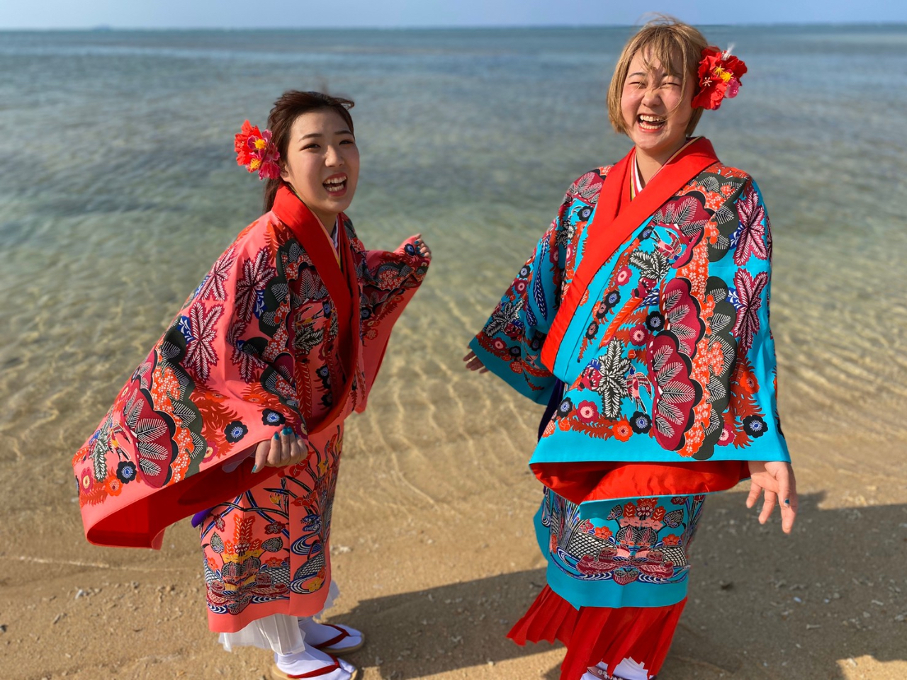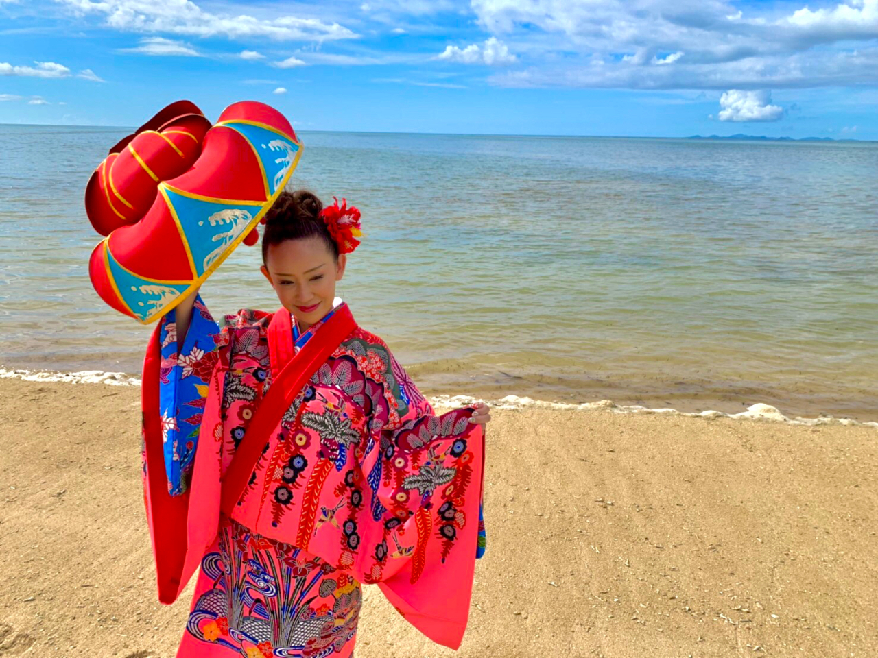 女性:紅型衣装(ジュバン・色襟・ステテコ・足袋・中から着る二部式・髪飾り・草履)付き