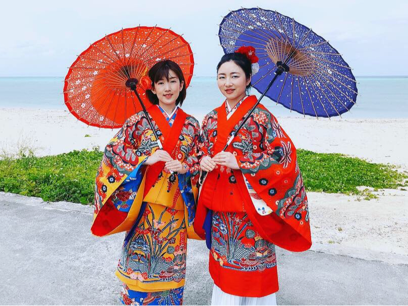 女性:紅型衣装(ジュバン・ステテコ・足袋・中から着る長着・髪飾り・草履)付き