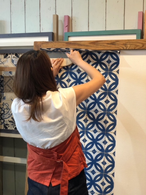 種類豊富な輸入壁紙をアレンジしてオリジナルのパネル作り☆