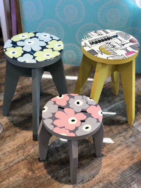 種類豊富な輸入壁紙をアレンジしてオリジナルのスツール作り☆