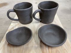 マグカップ2つ、小皿2つ作れました。 コーヒーを入れて、お砂糖やクリーム、お菓子を乗せようかな?