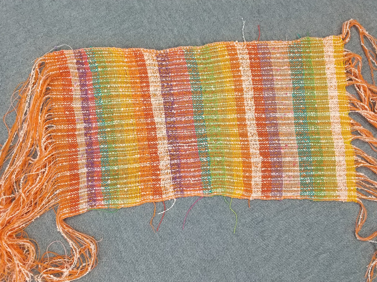 プラン@の「ストール・マフラー作り」より織る長さが短いので早く織りあがり、初めての手織りで長時間できるか不安な方や、小さいお子様にお勧めです。