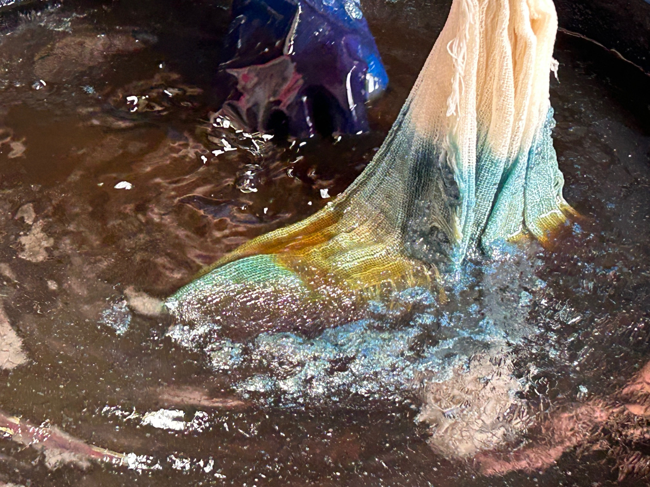 ストールを使って伝統的な灰汁醗酵建ての本藍染め体験!初心者の方、お子様からお年寄りの方まで