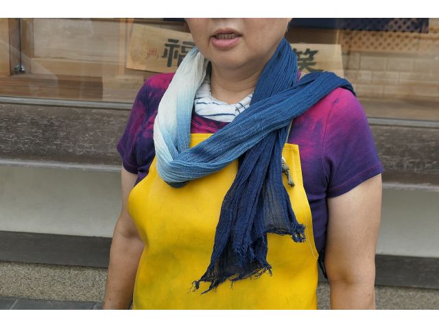 ストールを使って伝統的な灰汁醗酵建ての本藍染め体験!初心者の方、お子様からお年寄りの方まで