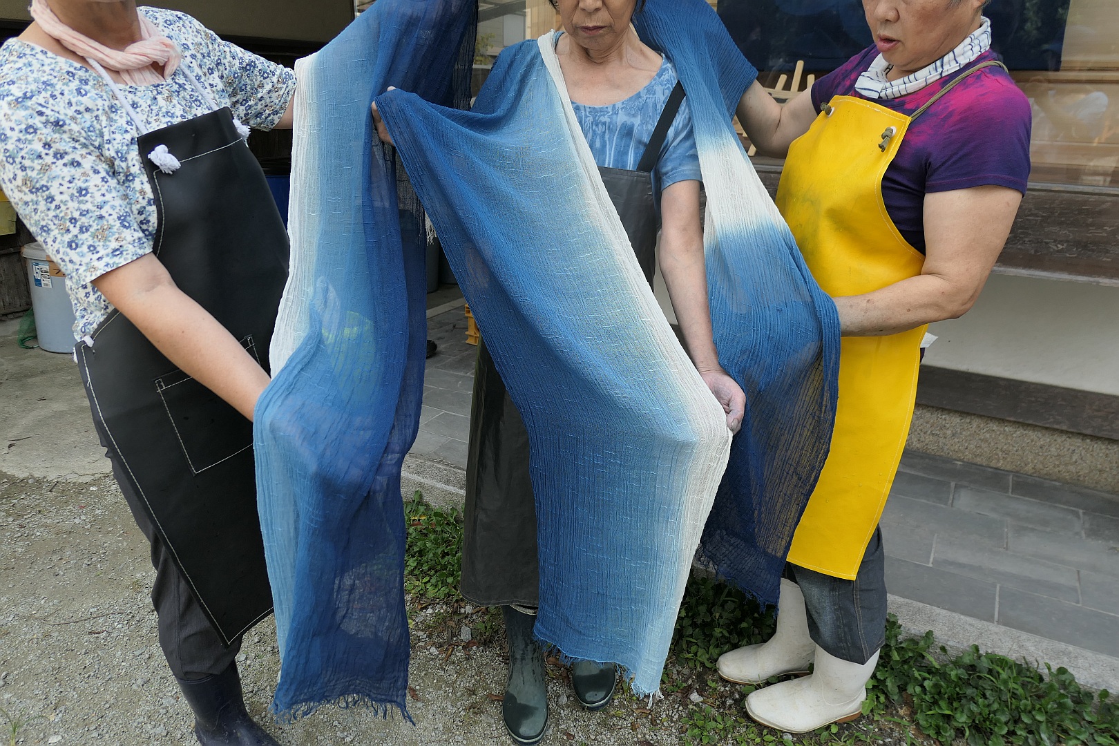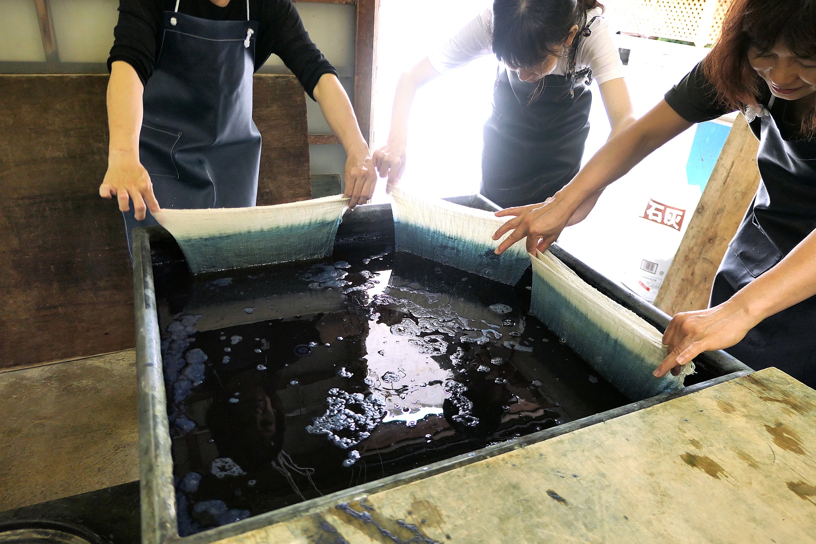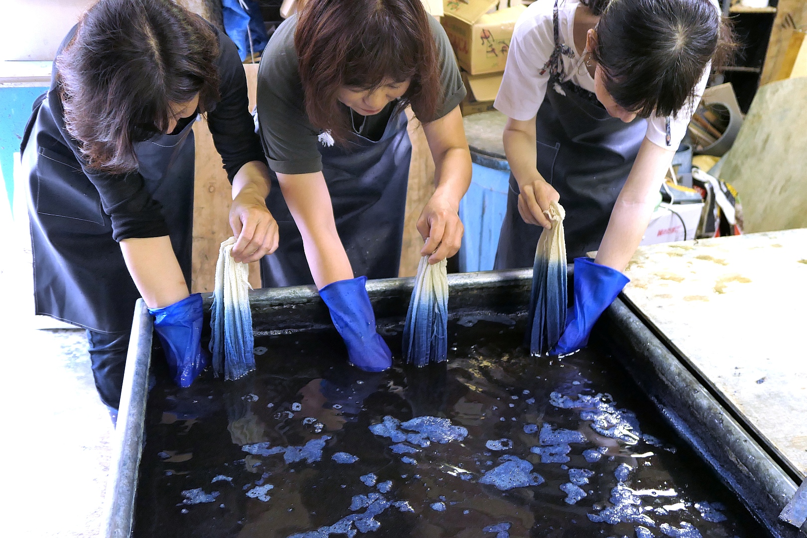 ストールを使って伝統的な灰汁醗酵建ての本藍染め体験!初心者の方、お子様からお年寄りの方まで