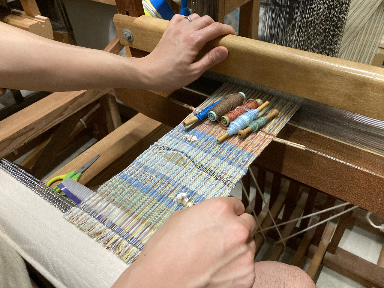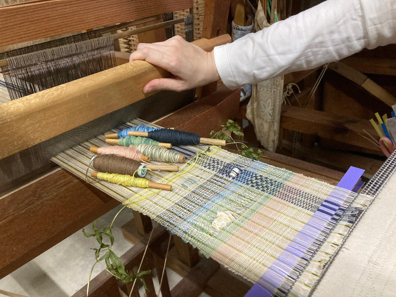 西表島の色を織り込んでください。天然素材と自然の色合い、自由に糸の色を選んで世界で一つしかない自分だけの織物を作ろう!