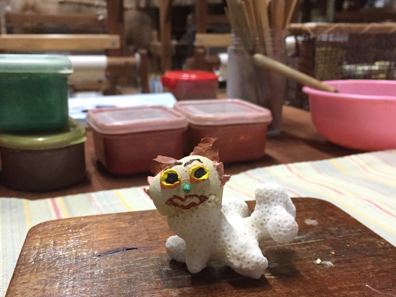★漆喰の頭に、顔料と混ぜた漆喰で顔作成
