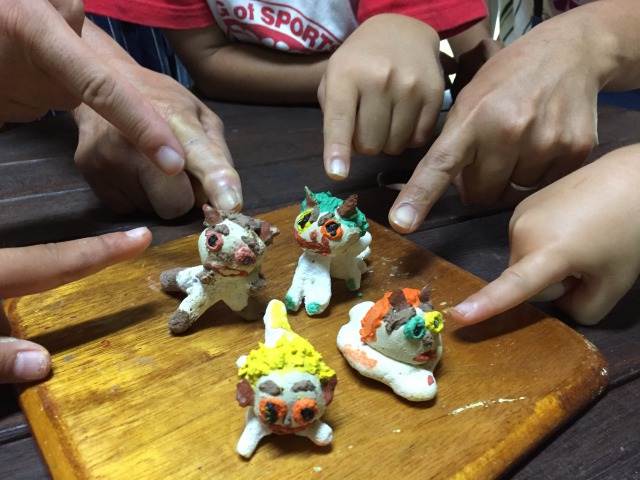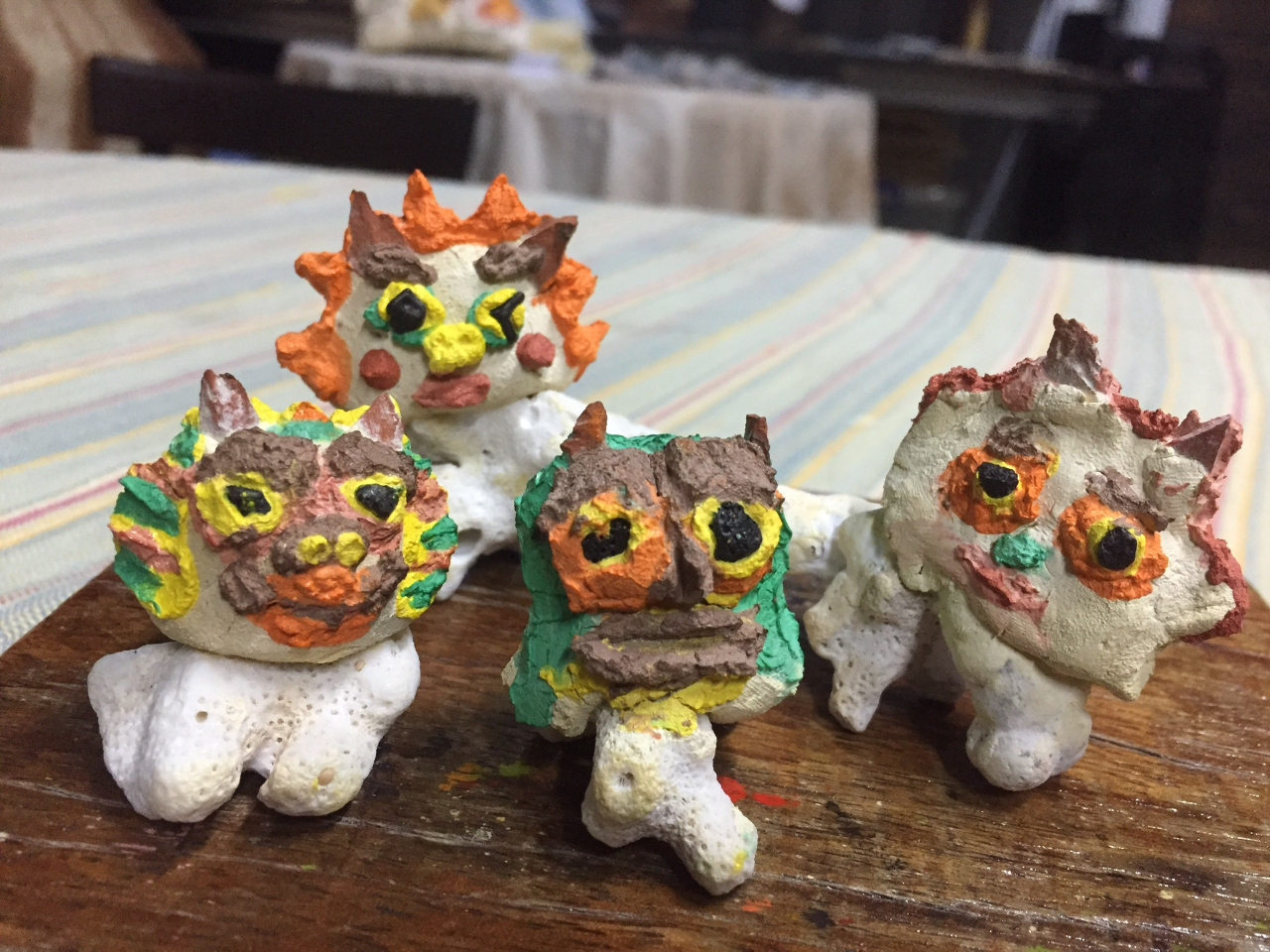 ★漆喰とお好みのサンゴを選び、シーサーの身体に見立てて作るシーサー
