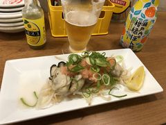 JR広島駅の中にあるekieは、綺麗で広いお土産屋さんが入っている。お菓子やらお土産を買う。そういえばお昼は宮島で牡蠣入りカレーパンを食べたきりだった。。新幹線の中でお弁当食べるという選択もあったけど、蒸し暑くてビールが飲みたくなって、入りやすそうな餃子屋さんに入り、ついつい餃子と牡蠣ポン酢を注文。スーツケースも何も言わなくても預かってくれた。QRコード読み込んで注文するスタイル。
