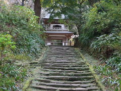 鎌倉五山、鎌倉七福神めぐりで浄智寺を訪れました。三門は鎌倉でも珍しい花頭窓の鐘楼門で美しく、三門へ続く石段も雰囲気がありました。