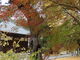 色づいたモミジ越しに仏殿を眺める。